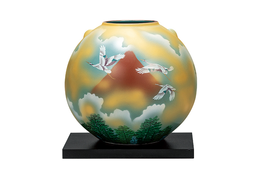 HOME | お勧め商品 | お勧め03 K9-新春縁起物 | お勧め K9-1390 前のページに戻る 本体価格¥16,500税込 7号花瓶・赤富士に鶴 径21.5×高19.5㎝ K9-1390 前のページに戻る page top