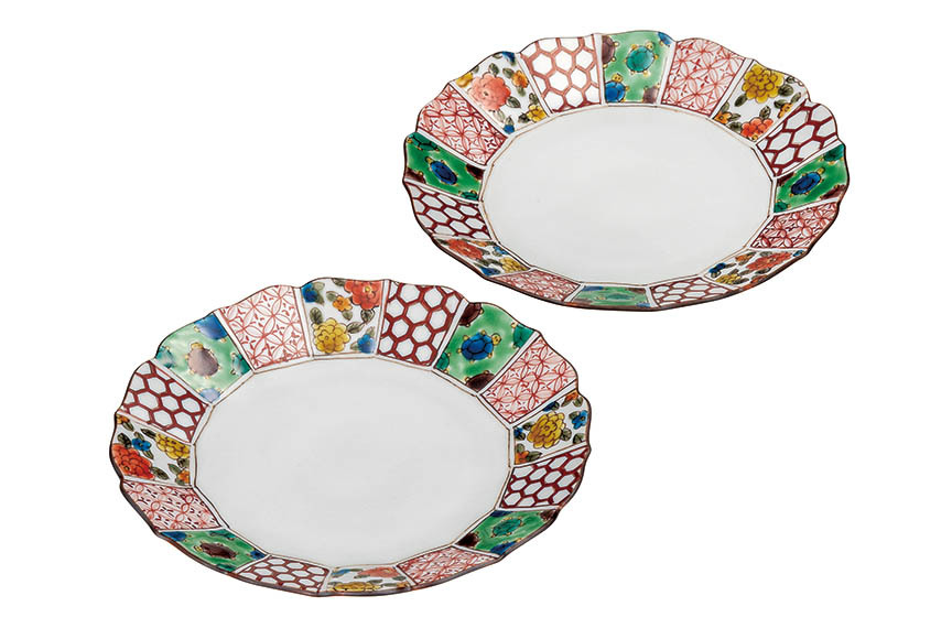 HOME | お勧め商品 | お勧め02 K9-盛皿茶碗 | お勧め K9-397 前のページに戻る 本体価格¥18,700 税込 6号ペア皿・マリーゴールドと吉祥紋 径19×高2.8㎝ K9-397 前のページに戻る page top